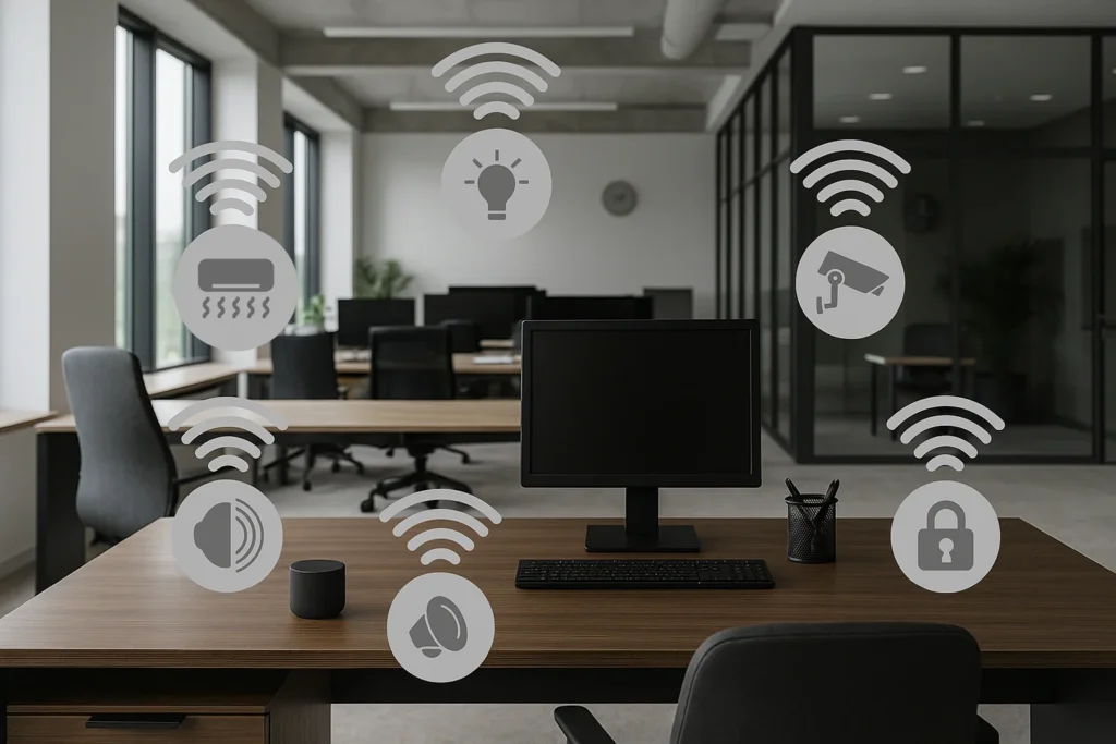 Optimiza procesos, ahorra recursos y eleva la seguridad de tu empresa con nuestras soluciones inteligentes. La domótica y automatización aplicadas en negocios permiten controlar desde iluminación y climatización hasta accesos y equipos, todo de forma remota y programada. Ya sea una oficina, local comercial o empresa industrial, transformamos tu espacio en un entorno más seguro, eficiente y moderno.